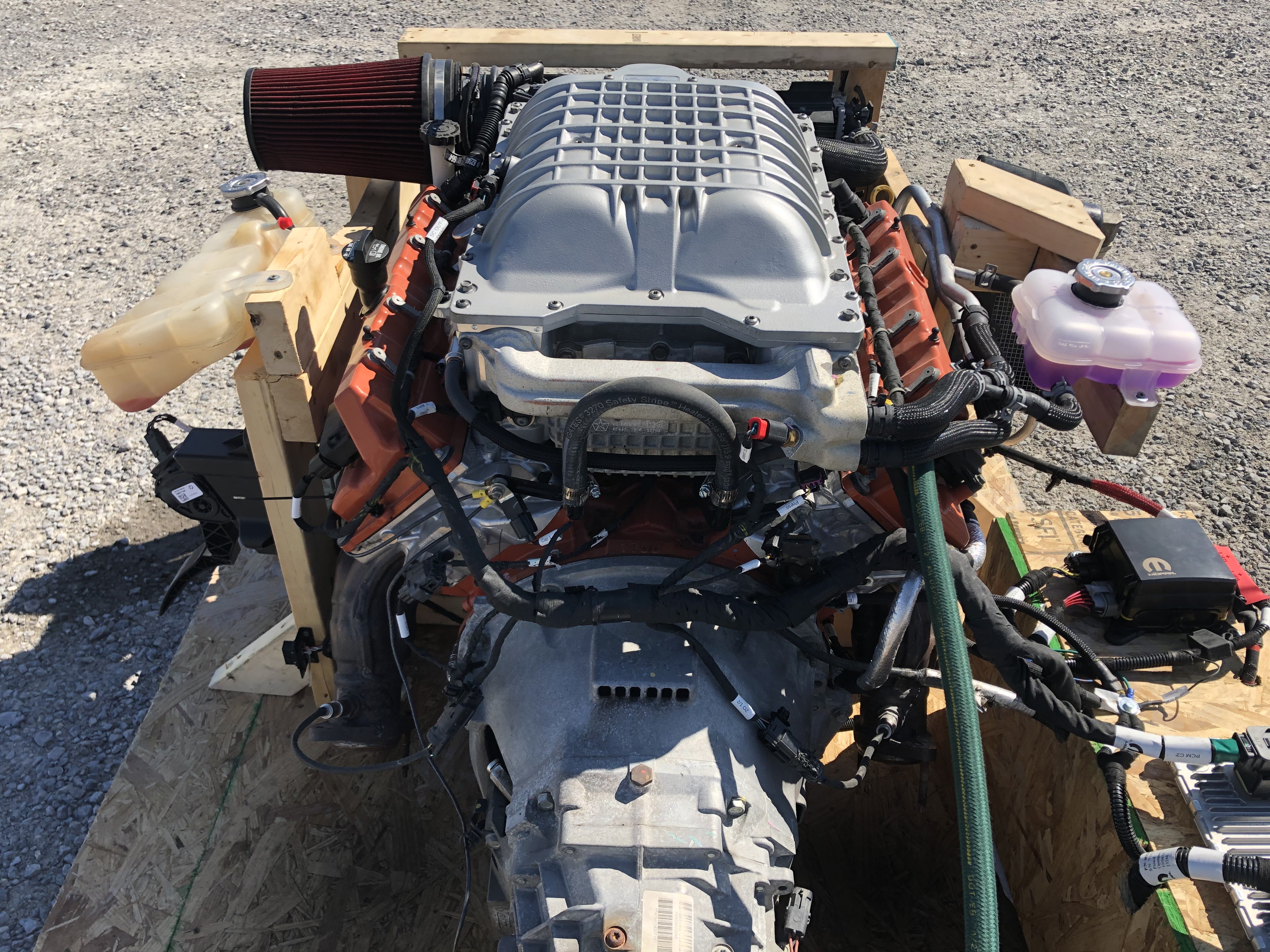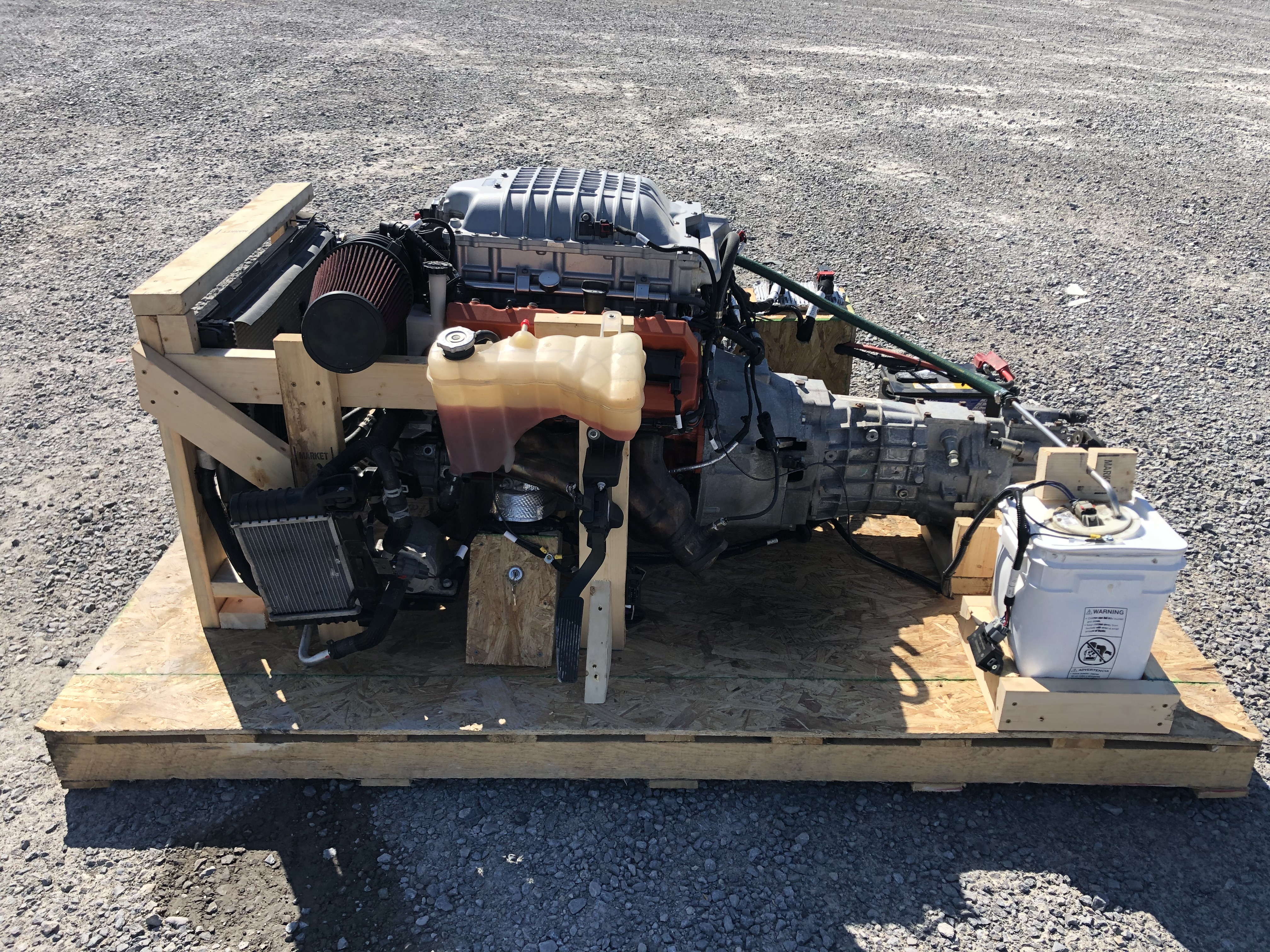 6.2L Supercharged Hellcat V8, TR6060 Manual 6 speed transmission, all coolers, and the MOPAR Hellcat stand-alone kit. This stand-alone harness has been discontinued and is very hard to get right now.